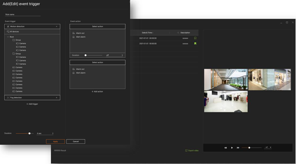 • 이벤트 트리거 및 동작 규칙 설정 기능